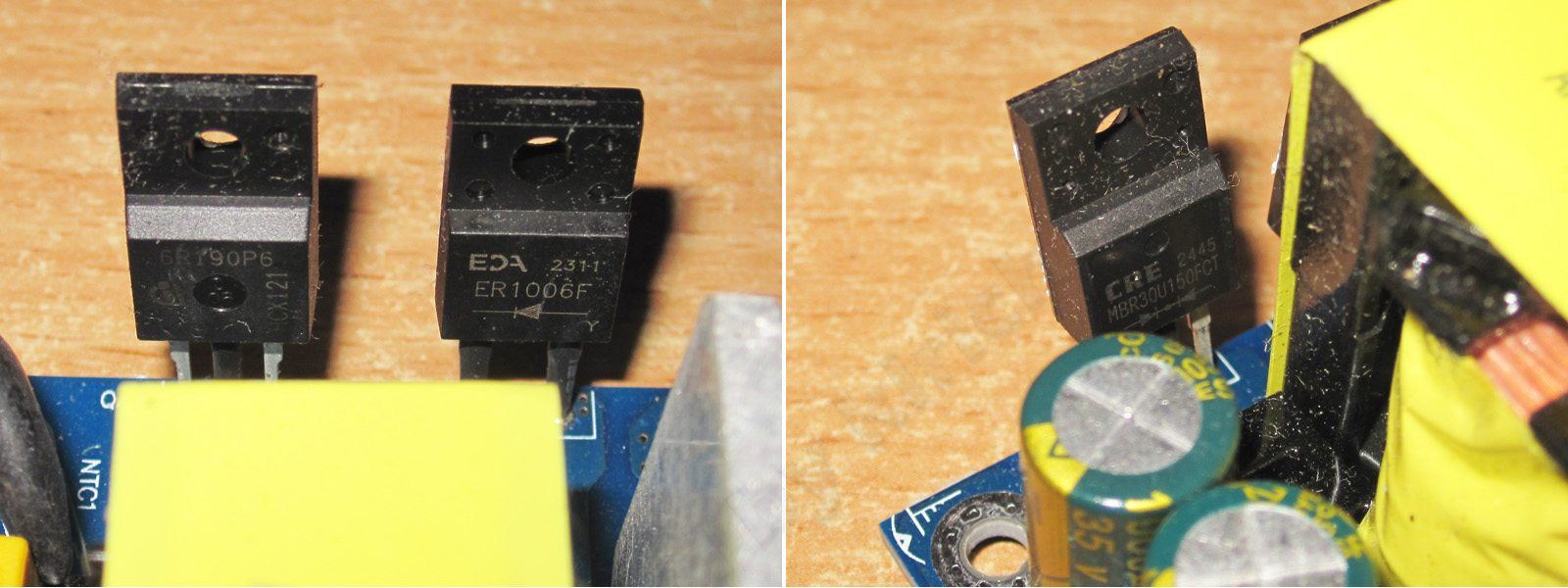 2. Выходные диодные сборки на 30А 150 вольт, что для заявленных 10А выглядит с приличным запасом.