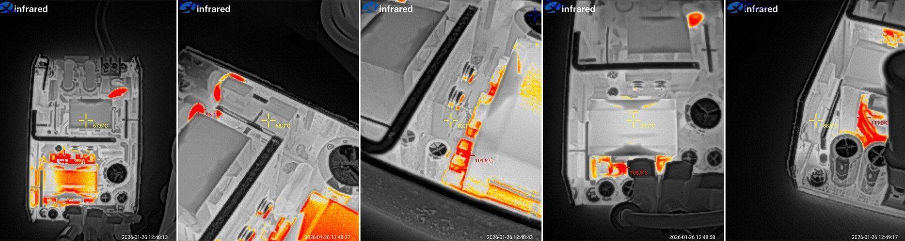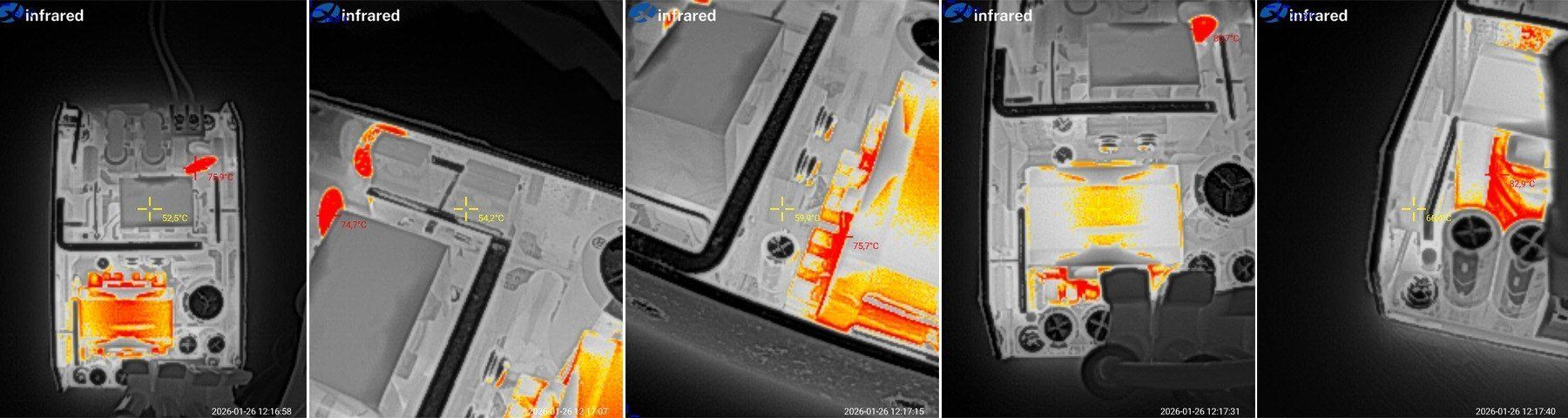 Первое фото, холодный БП без нагрузки, предпоследнее, горячий под 100% нагрузкой, последнее, горячий без нагрузки.
