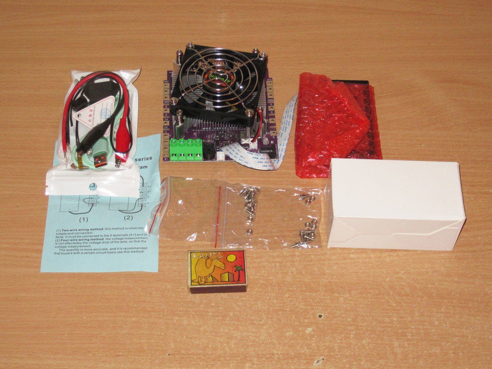 1. В основном пакете лежало шесть винтиков, шесть гаечек, пара проводов с крокодилами, плата-адаптер и переходник