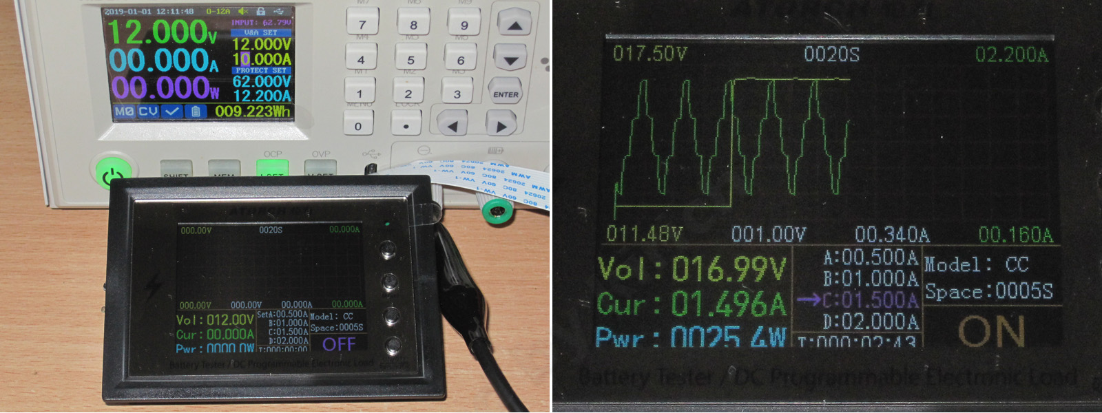 Еще на этапе тестов с силовыми модулями заметил странность, нагрузка при установке малого тока выставляла сначала ток больше, а потом снижала, но тогда я писал на то, что мне это просто показалось, тем более что я тестировал работу при больших токах и могло действительно показаться.