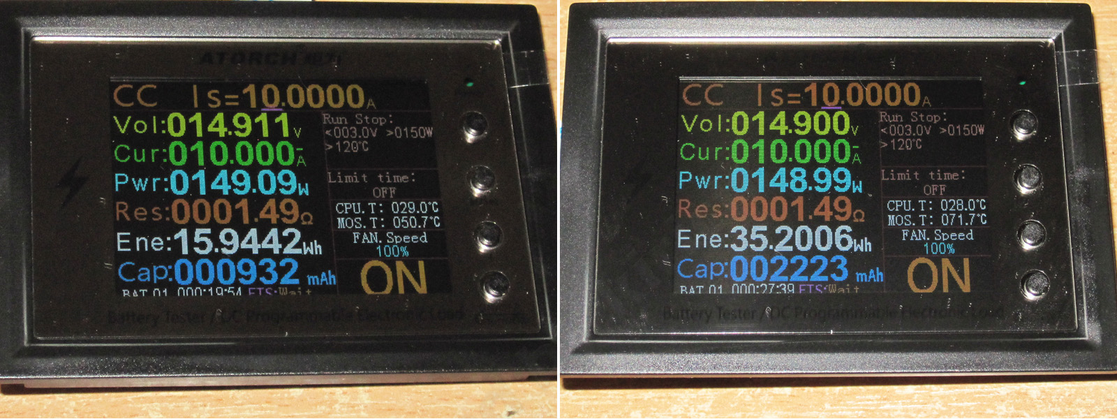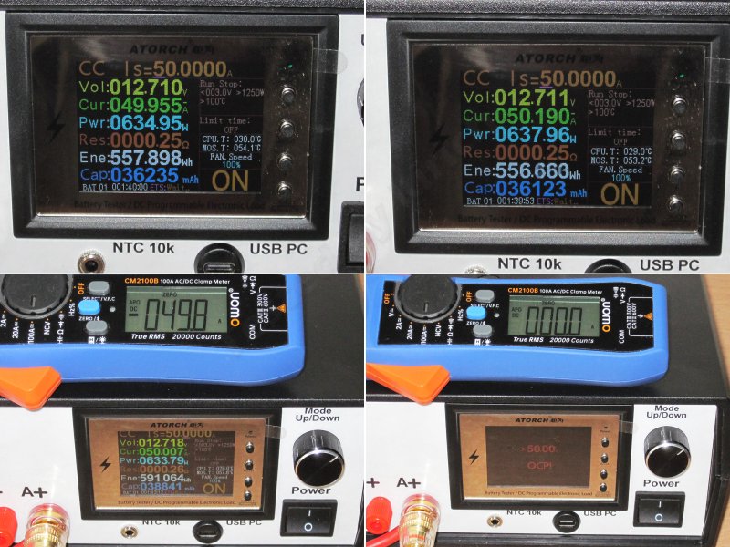 Затем подключил ее к нагрузке и выставил ток разряда 50А.
