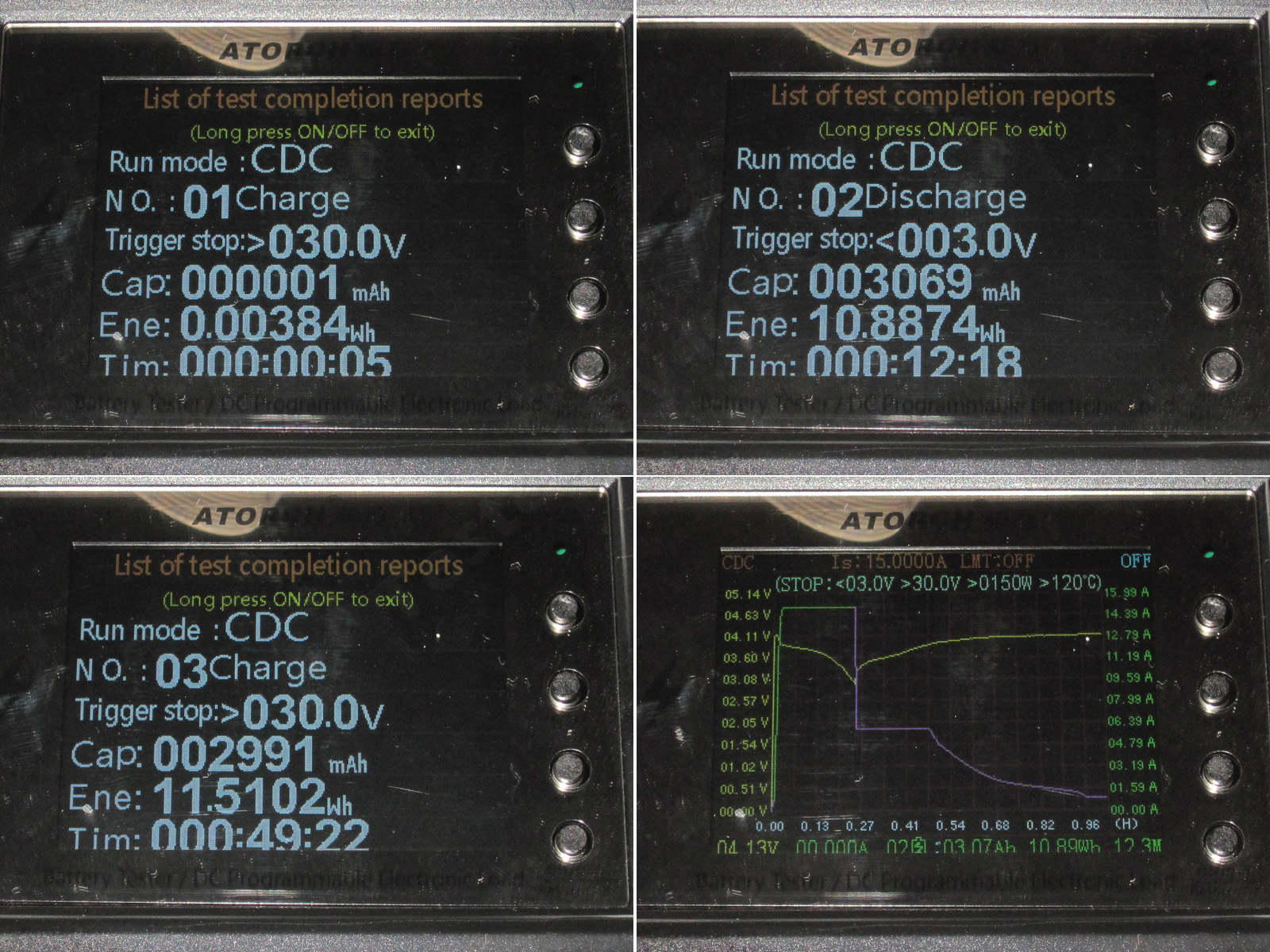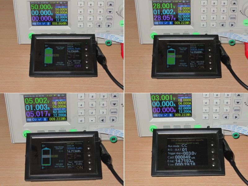 6, 7. А вот новый режим, тестирование батарей, на самом деле здесь все то же самое что и раньше, но возможно более удобно. Задаем верхнее и нижнее напряжение батареи, ток разряда и после этого в данном окне будем видеть не только процесс разряда, а и проценты оставшегося заряда батареи.