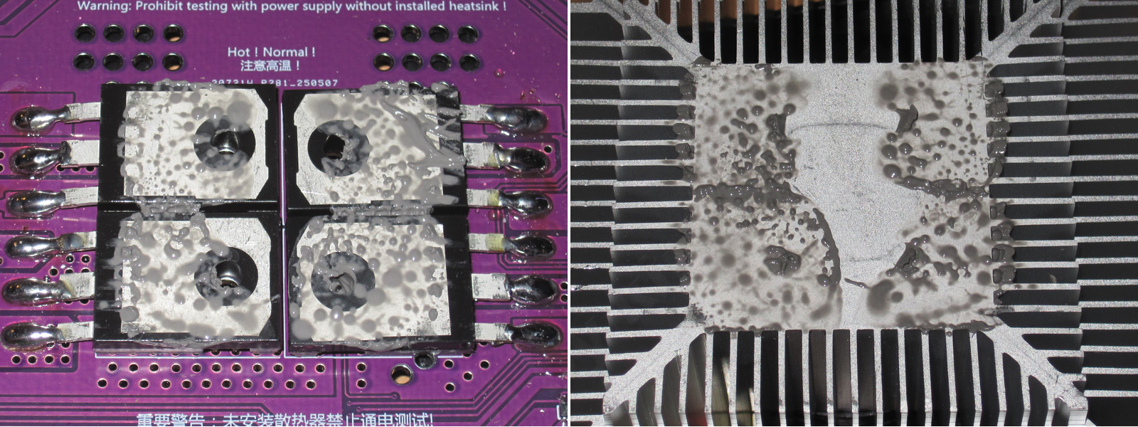Паста покрывает полностью всю площадь компонентов, что есть хорошо. Кстати, если вы хотите немного улучшить теплоотвод, то можно заменить ее на что-то получше, например МХ-4.