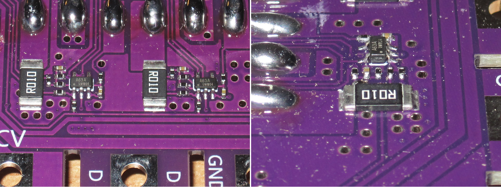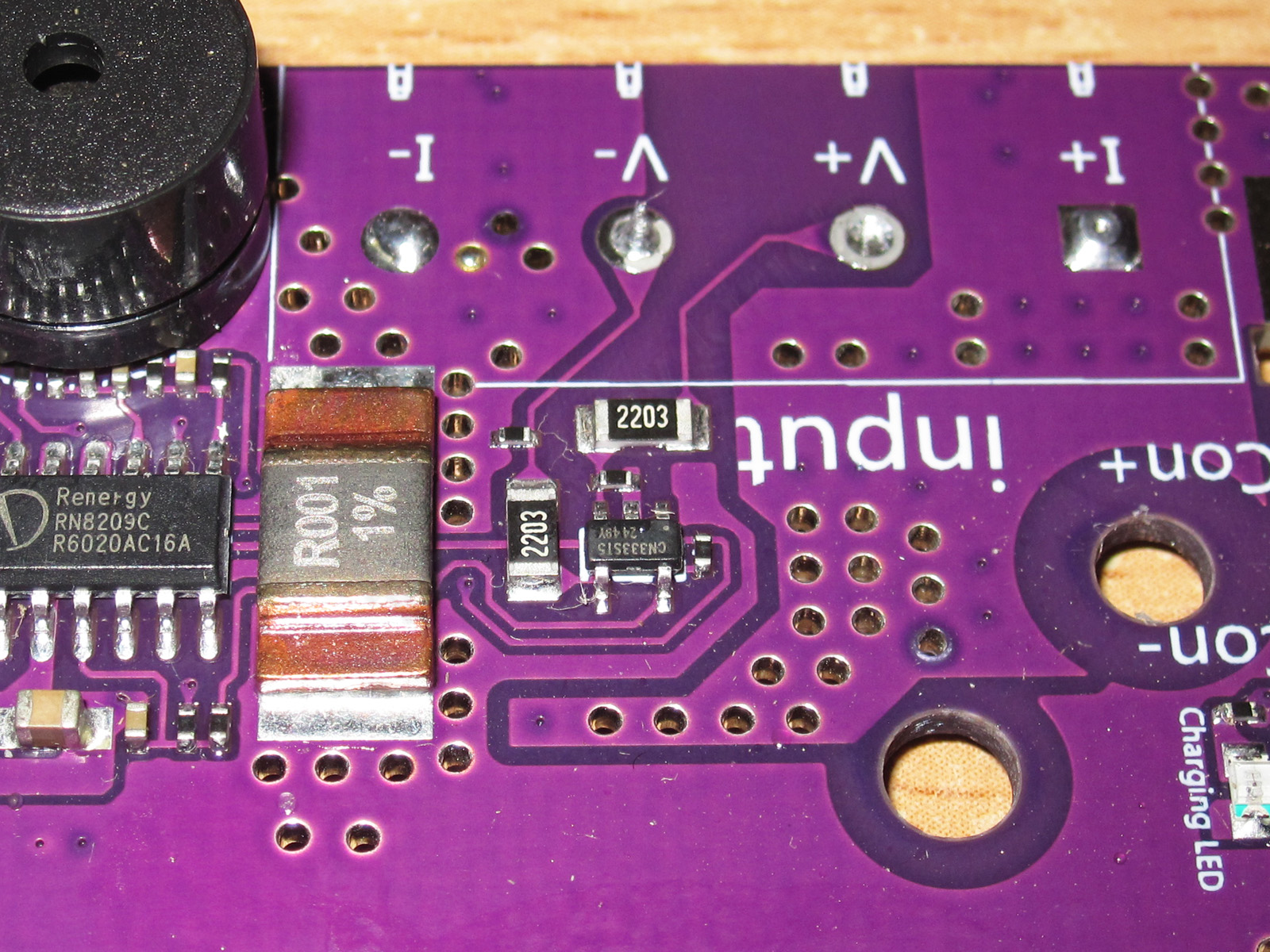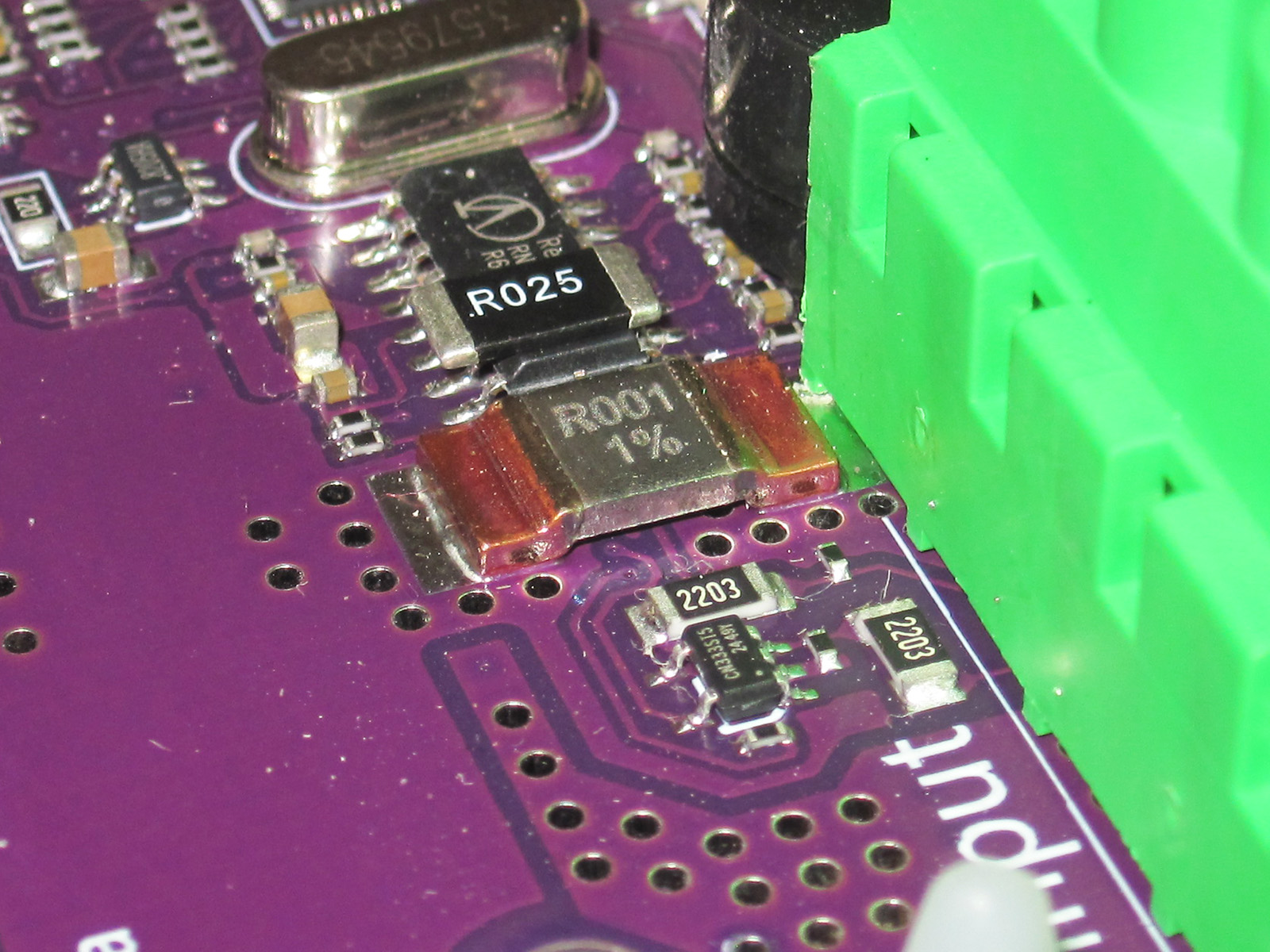 Шунт имеет тот же номинал что и у DL24EW и DL24MP, но разработчики явно услышали мои просьбы и поставили нормальный шунт, мощный, правильный, рядом для сравнения шунт 2512 на 2 ватта, у старых версия стояло 2шт 2512, но по 1 ватту. В общем угодили, респект.