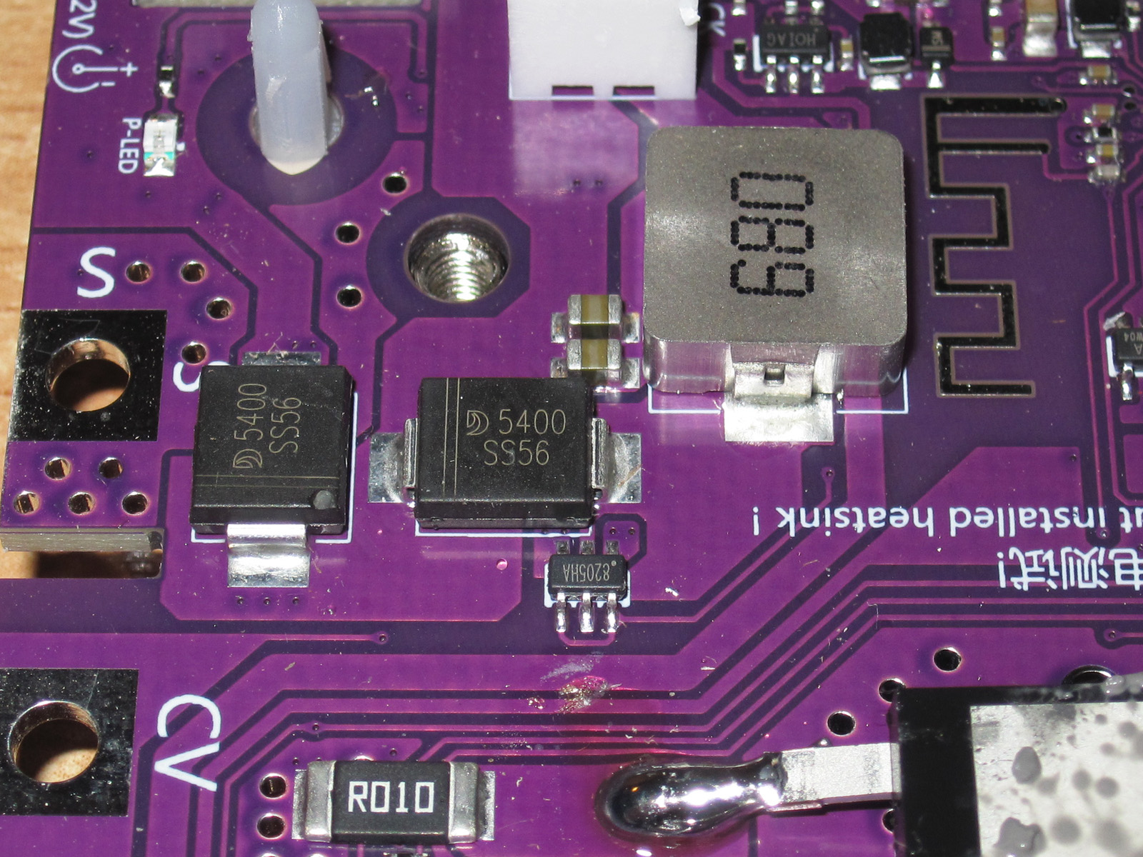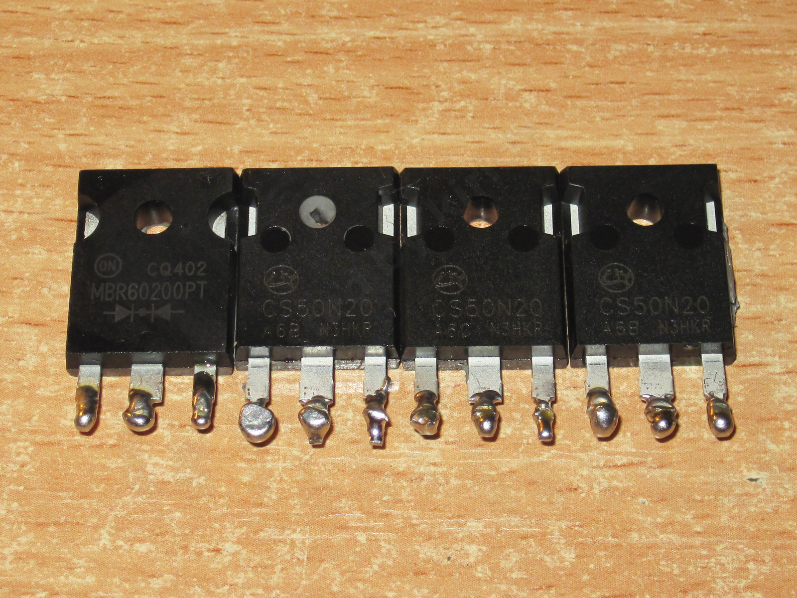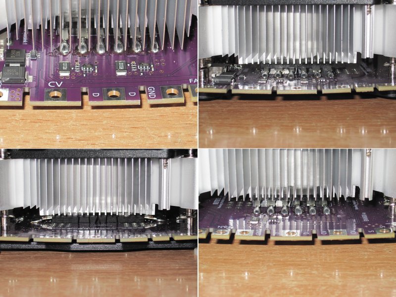 Под радиатором также скрывались три транзистора и диодная сборка на 60А, и это также правильное решение, помнится у DL24MP бывали сложности при работе на максимальных токах. я с ними не сталкивался, потому как делал по другому (диоды и радиаторы где-то лежат рядом с клемниками :)), а родные диоды с платы вообще убирал, но пользователи обычных плат жаловались.