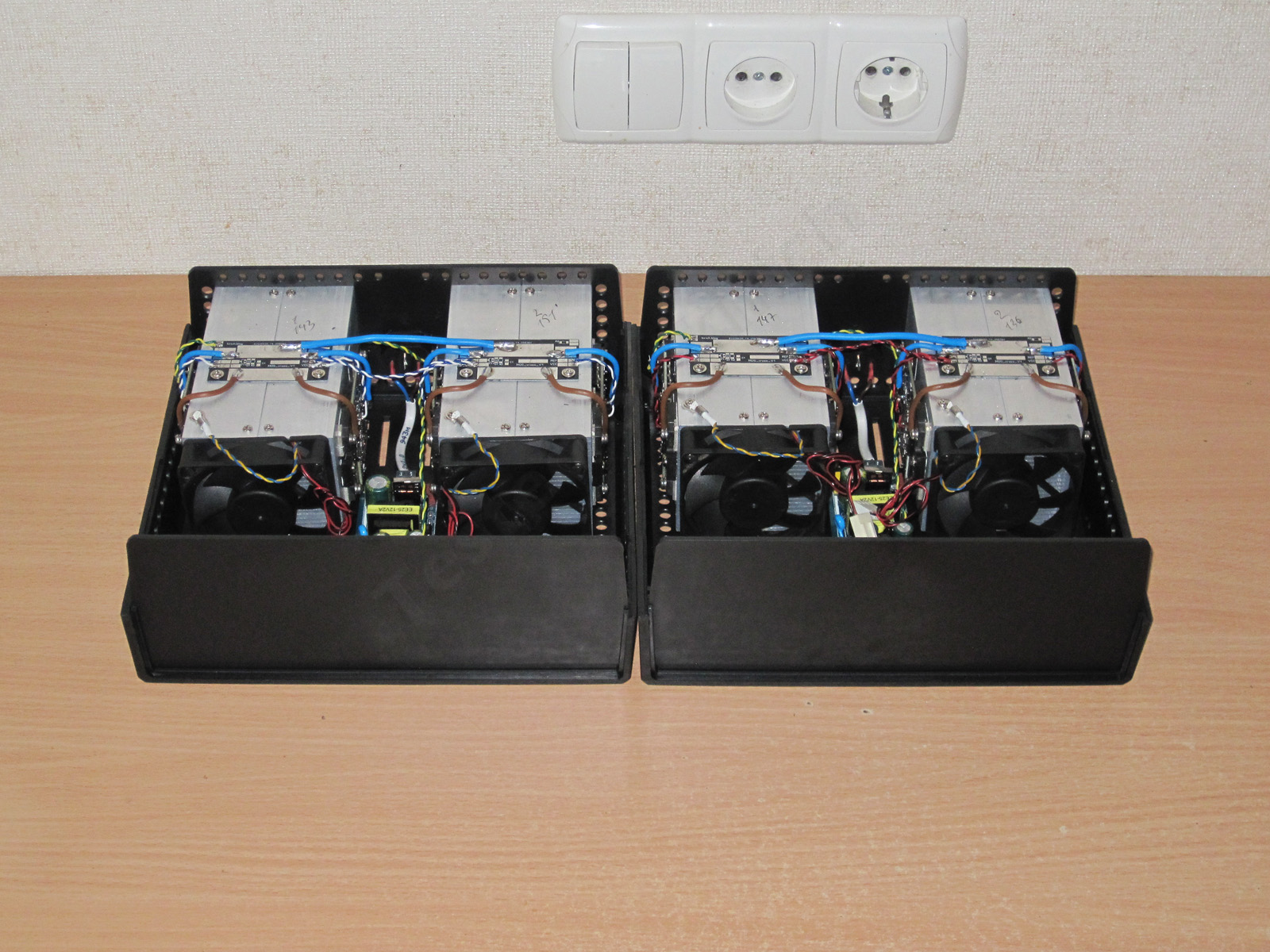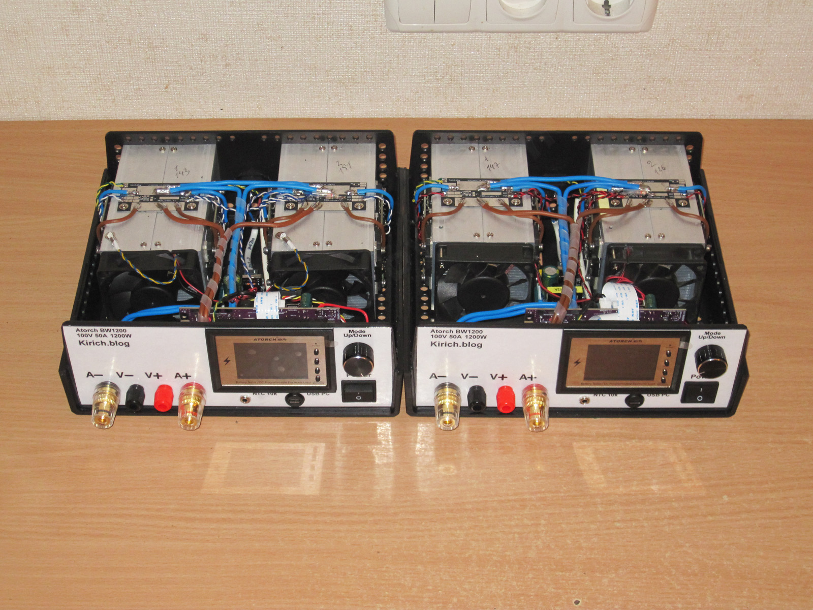 Устанавливаем переделанные платы в корпус нагрузки, подключаем все провода, настраиваем, проверяем, попутно сжигаем пару вентиляторов (ну а кто говорил, что переход на новое железо будет легким и безболезненным).