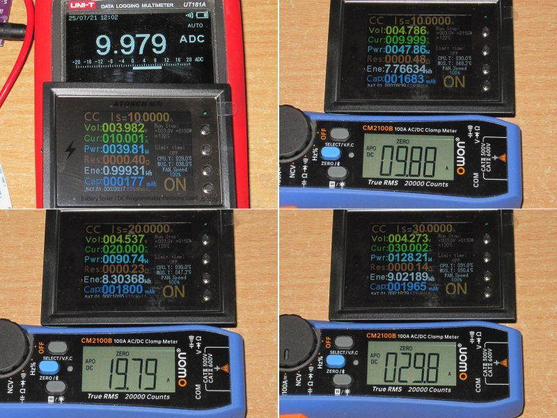 Первое фото делалось еще когда проверял с RD6012P и контактным методом измерения, дальше RD6030 и соответственно с клещами.