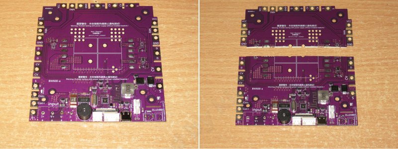 4. Между BW150 и BW600 также много сходства, практически одинаковая элементная база, но тут разработчики решили сделать обе версии с управлением зарядом и ключевое отличие между этими моделями в том, что у BW600 внешний модуль с дисплеем и возможность подключения внешних силовых модулей. Остальные отличия, например питание и номинал шунта, это скорее косметика.