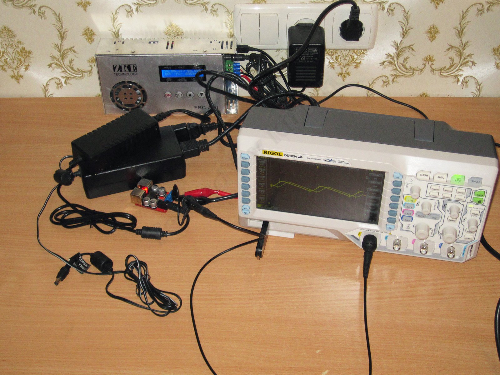 Для измерения уровня пульсаций использовался все тот же "стенд", правда в этот раз произошли некоторые изменения. Для уменьшения количества помех от измерительных приборов я питал нагрузку от трансформаторного БП.