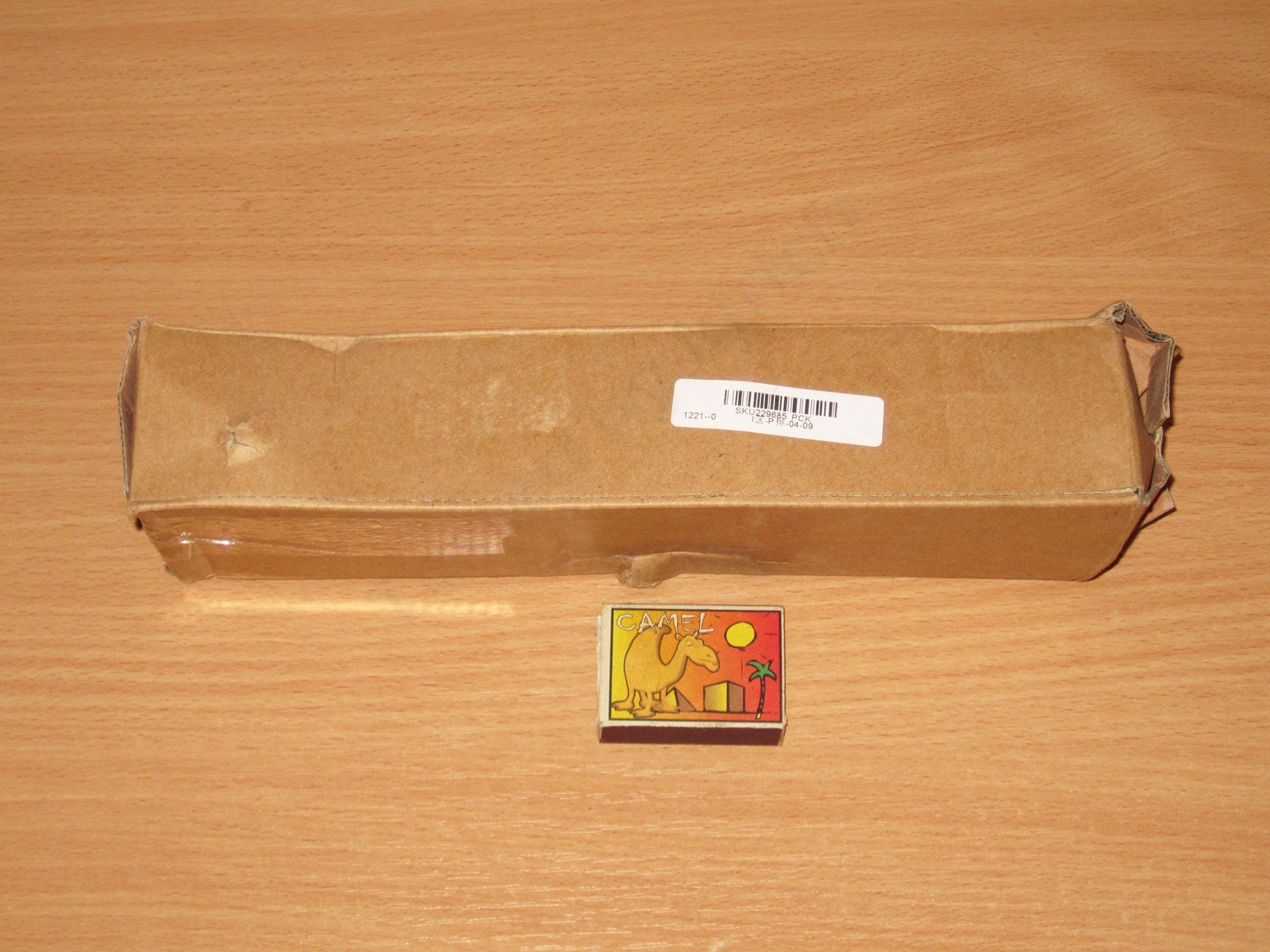 Держатель был в картонной коробке, замотанной в лист вспененного политилена. но это не помогло и коробку изрядно пожевала почта.