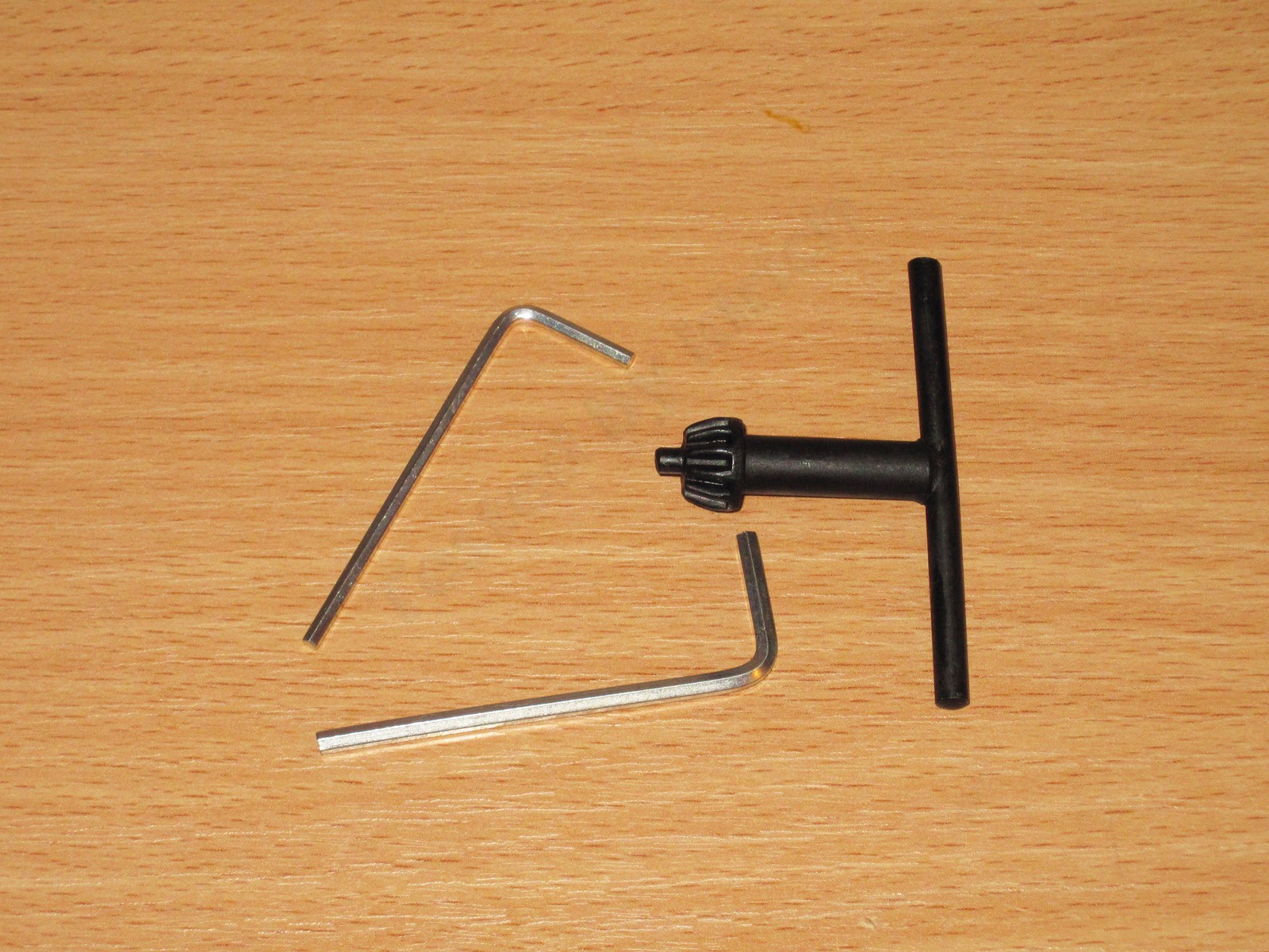 В комплекте дали ключ к патрону и пару небольших шестигранных ключиков.