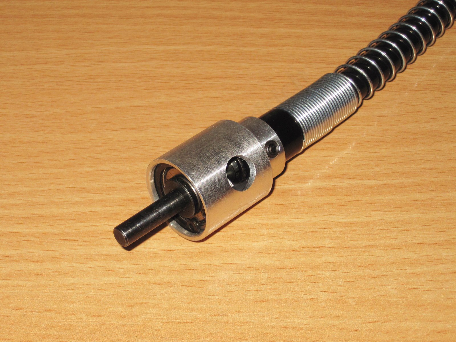 Сначала откручиваю правый винт, это позволяет вынуть собственно сам гибкий вал, выполненный в виде стального тросика, который находится внутри стальной пружины.