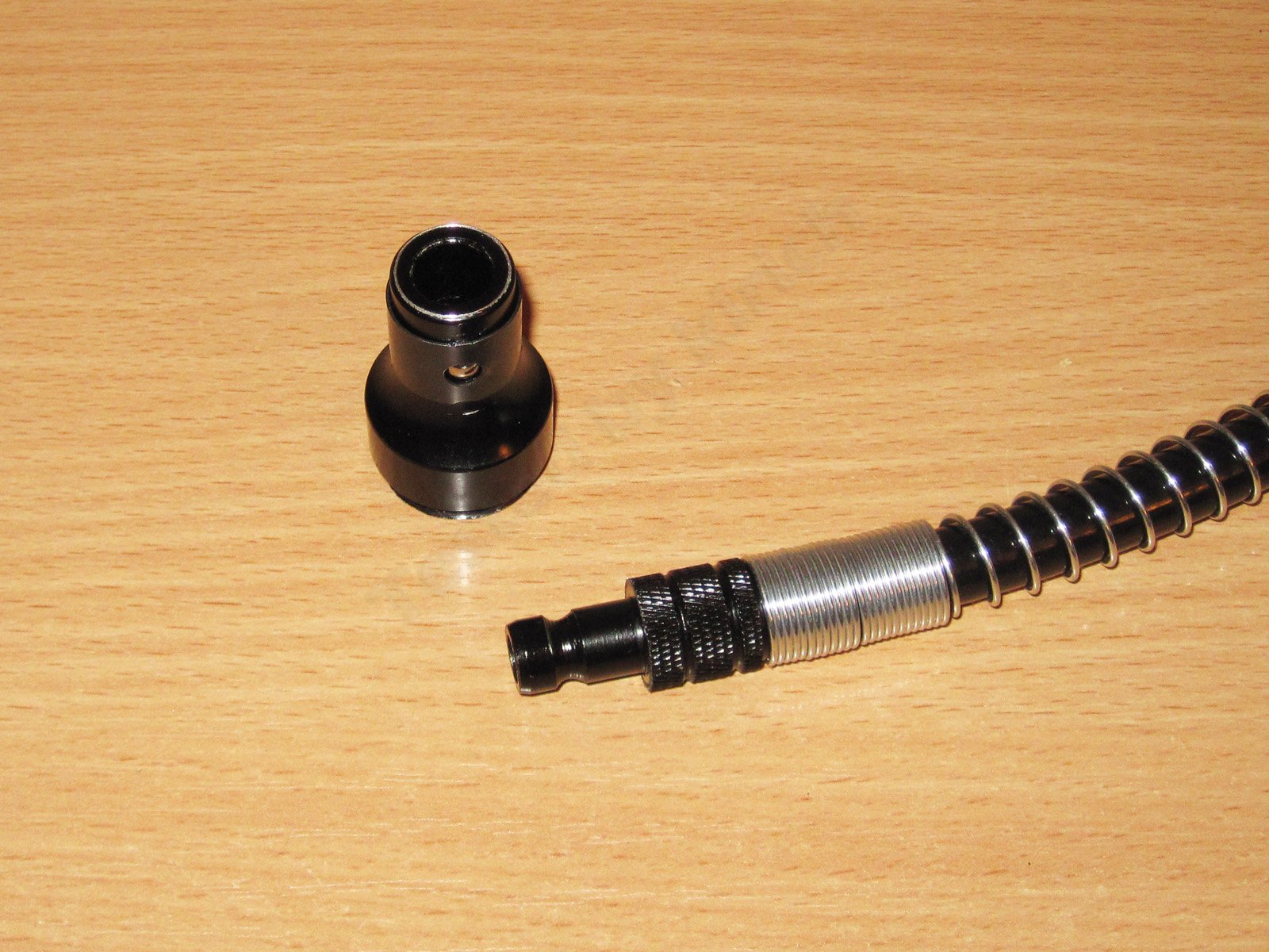 Сначала скажу о гибком шланге, претензий у меня к нему нет, вообще. Работать действительно очень удобно. Есть только пожелание к конструкции, хорошо было бы иметь возможность крепить всю эту конструкцию к корпусу гравера, тогда было бы вообще отлично. Радиальный люфт отсутствует, биений нет, держать удобно.