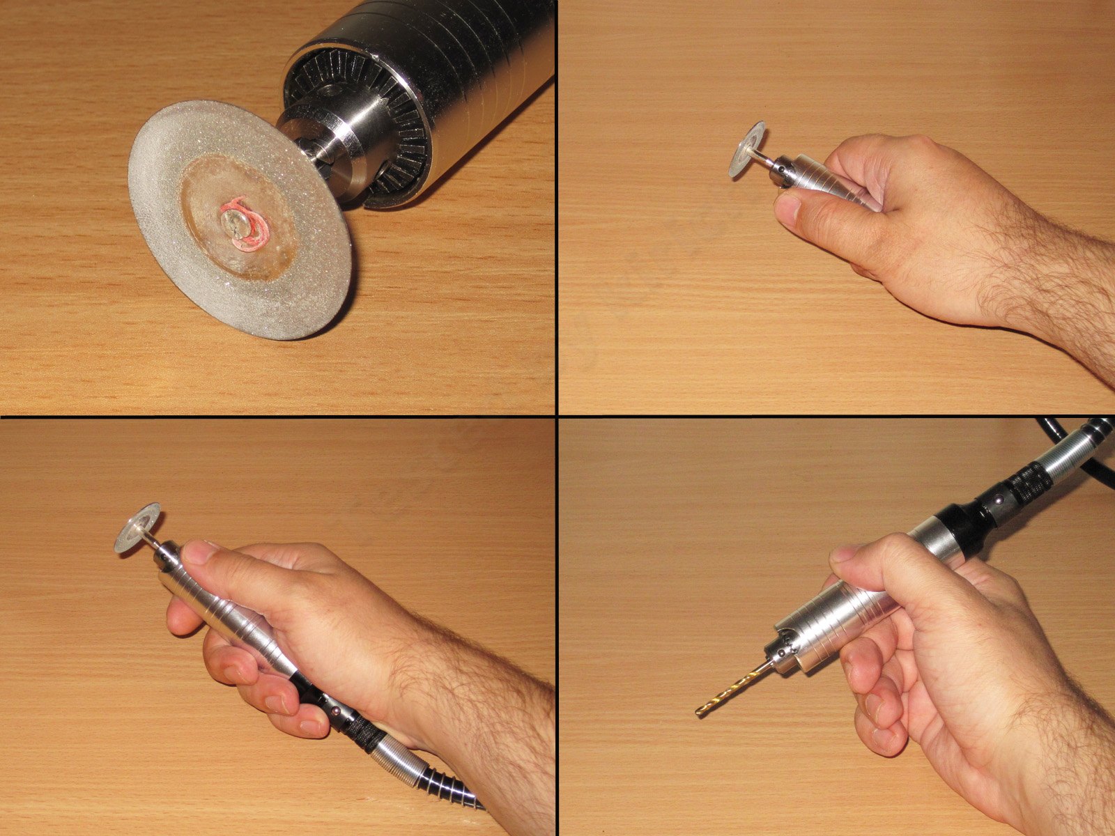4. В принципе можно сверлить, но для сверления лучше иметь специальную стойку, будет гораздо удобнее. А так как гравер имеет довольно высокие обороты даже на минимальной скорости, то в ручном режиме толстыми сверлами сверлить не выйдет. сверла будут «гореть», а тонкие можно поломать, хотя патрон их и может фиксировать.