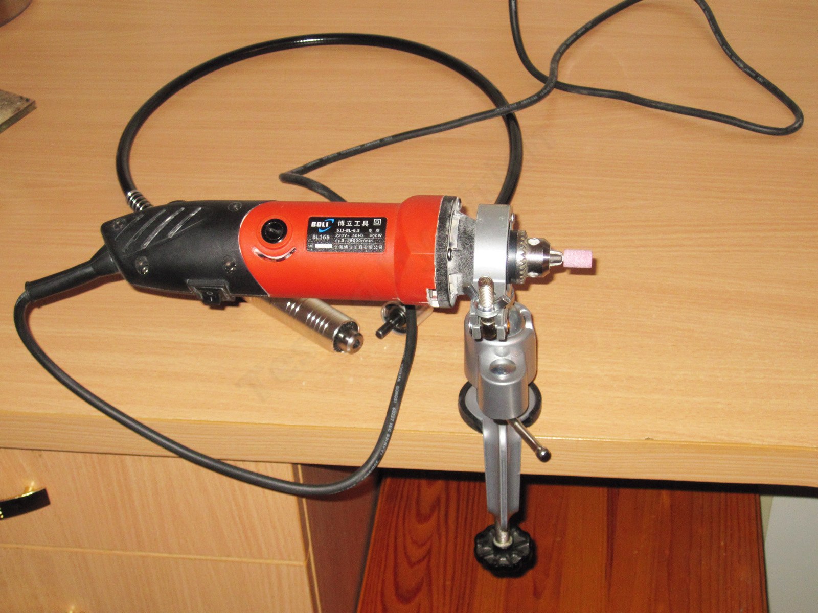 Было бы неплохо, если бы гибкий вал фиксировался и за переднюю часть самого гравера, но так как этого нет, а гравер надо держать, то для этого служит держатель.